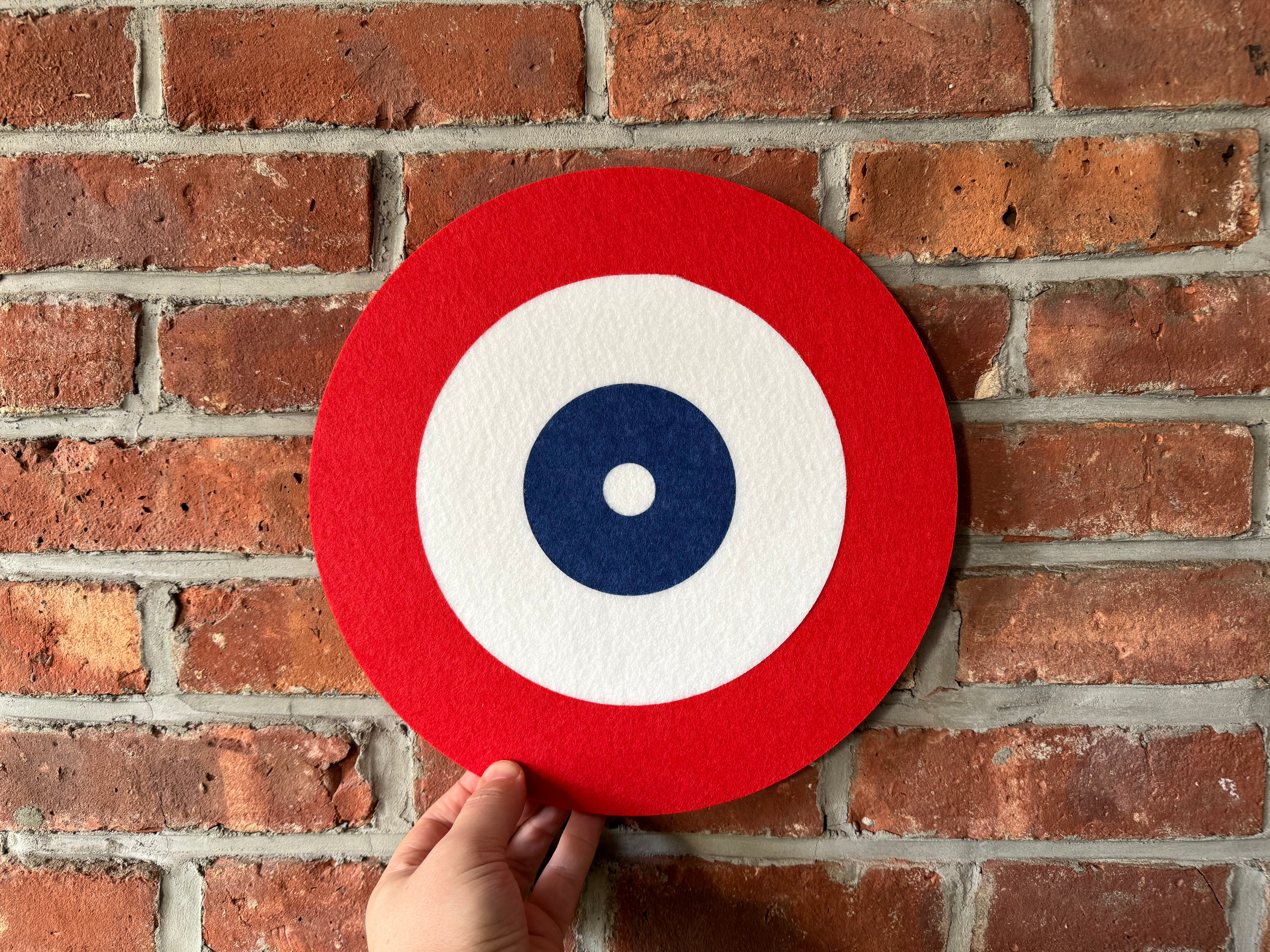 Comes in 12" or 16" diameters. Your choice of a red outer + blue inner or blue outer + red inner rings.