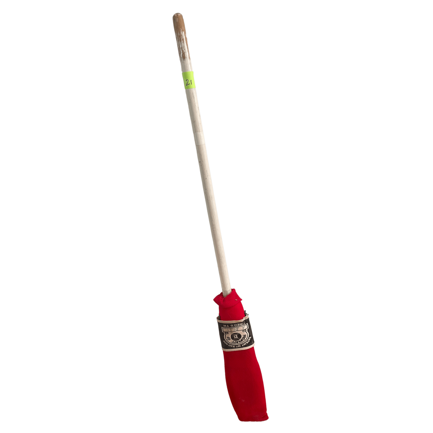 This vintage curling broom represents the bridge between corn brooms and modern fabric pad broom. The bristles are wrapped in knit fabric to reduce debris on the ice. Minimal paint loss on handle. Fabric covering is in good condition (no holes). Manufactured by The Midwestern Broom Co.